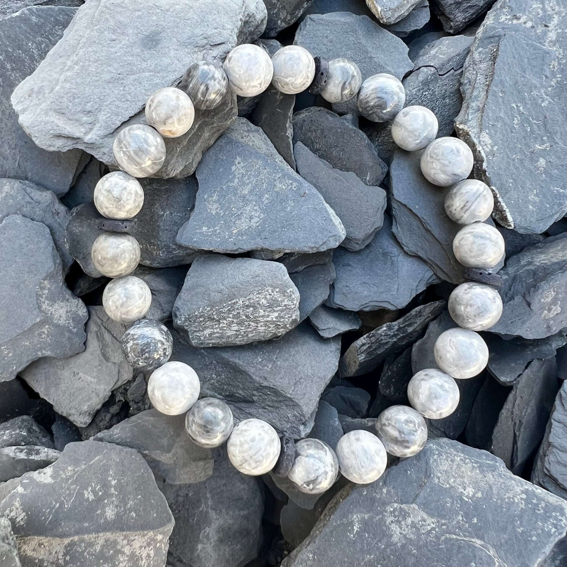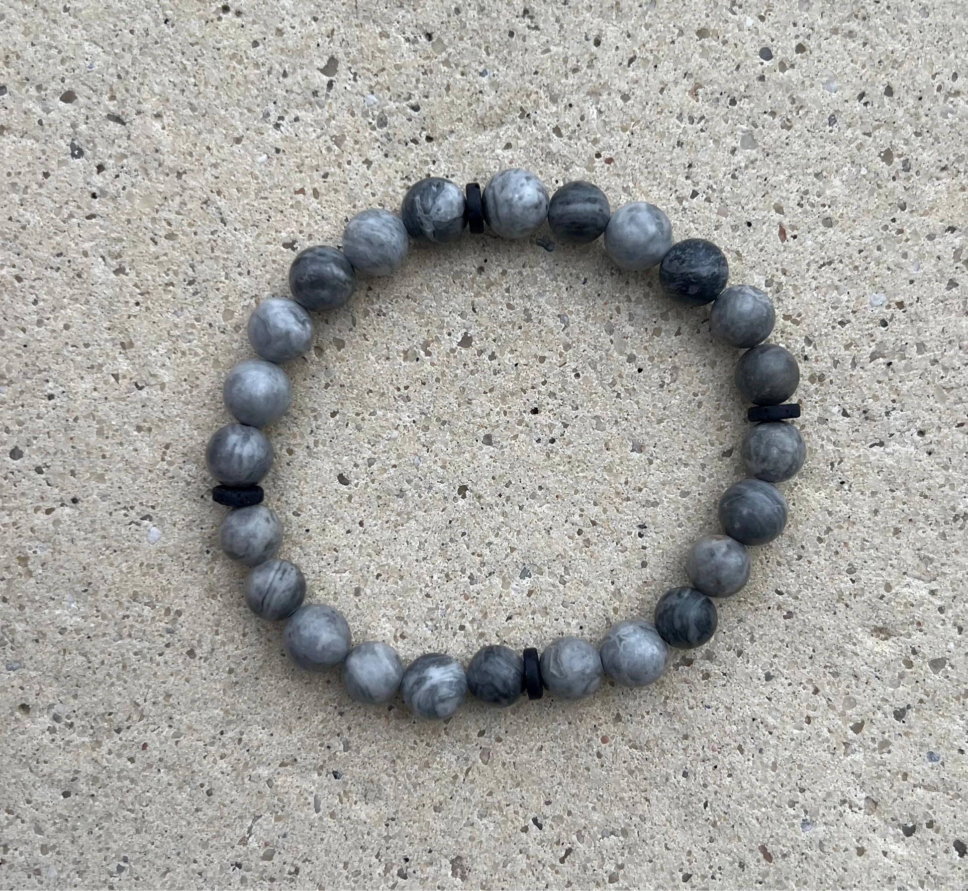 Le bracelet Atlas se compose de perles gris foncé métallisé, robustes et élégantes.