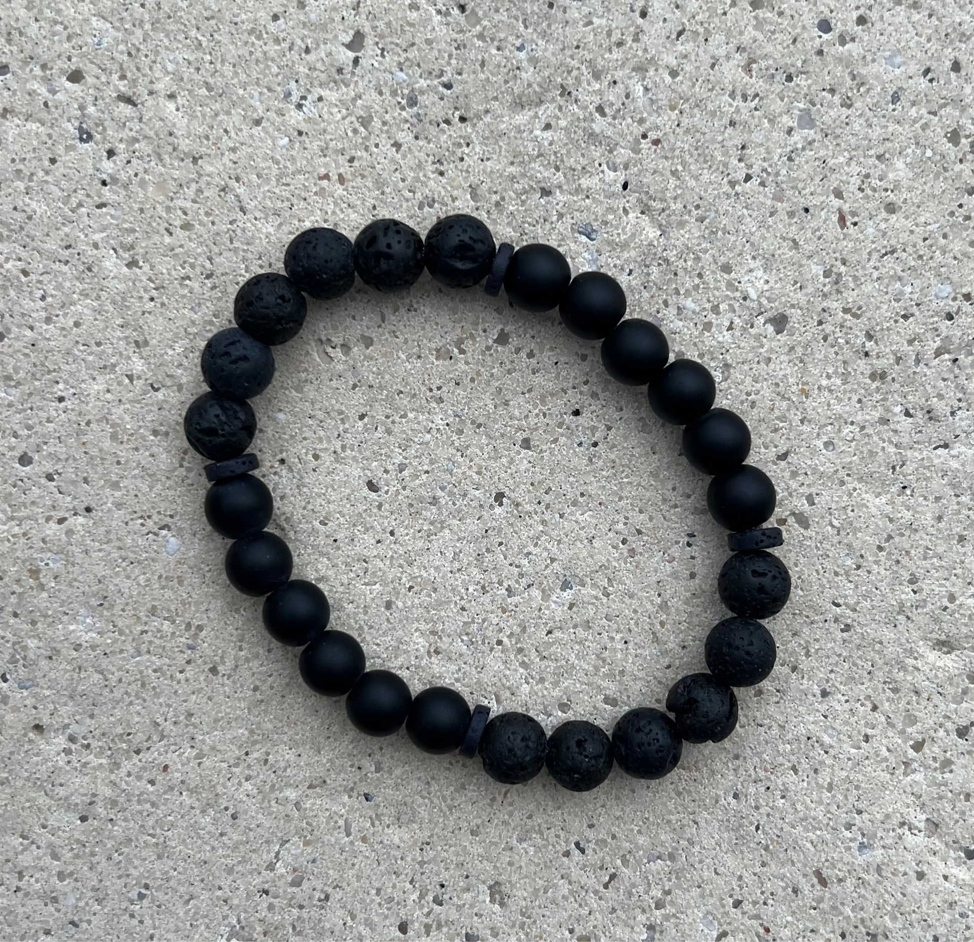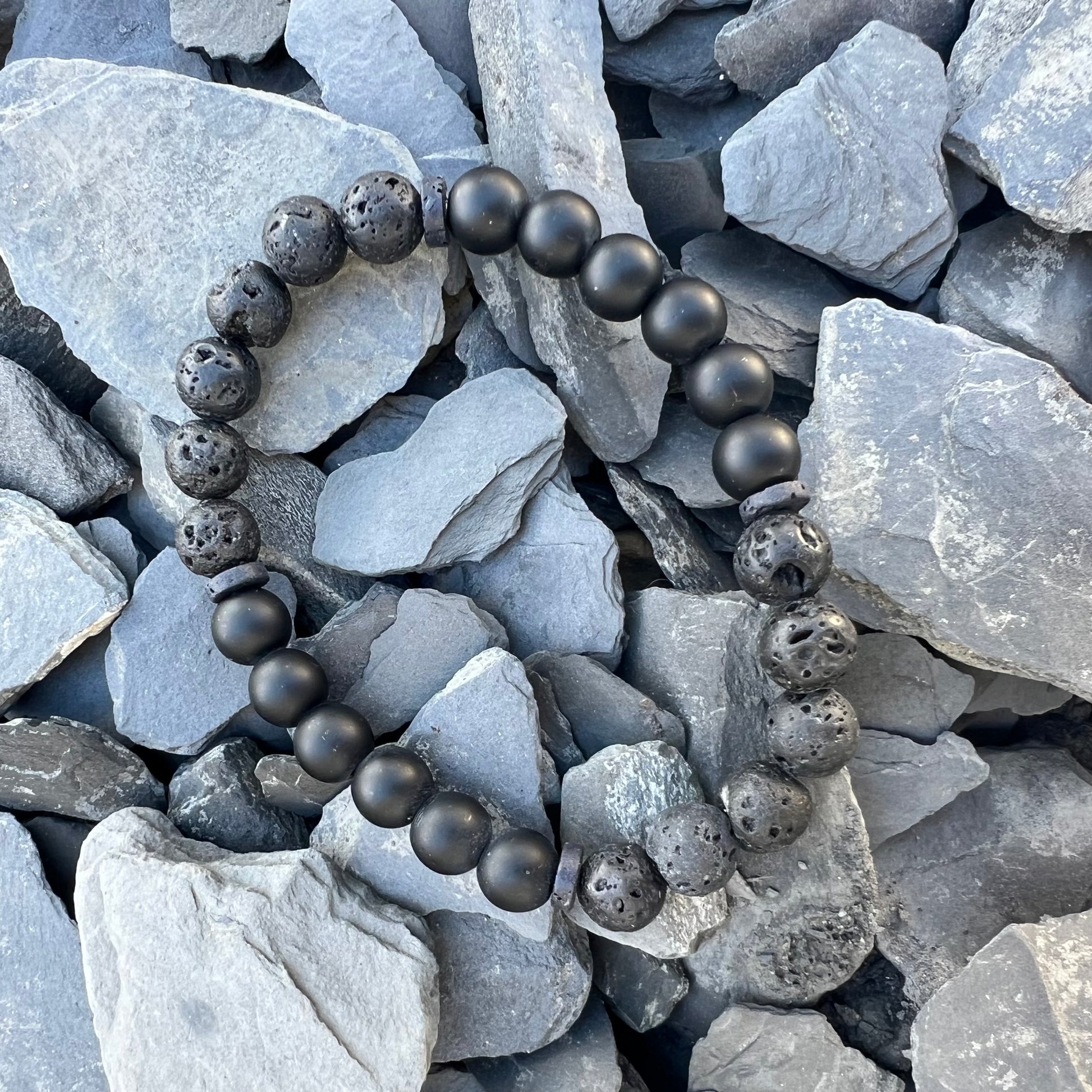 Le bracelet Charcoal allie pierres noires mates et perles de lave noires, pour un style sobre et puissant.