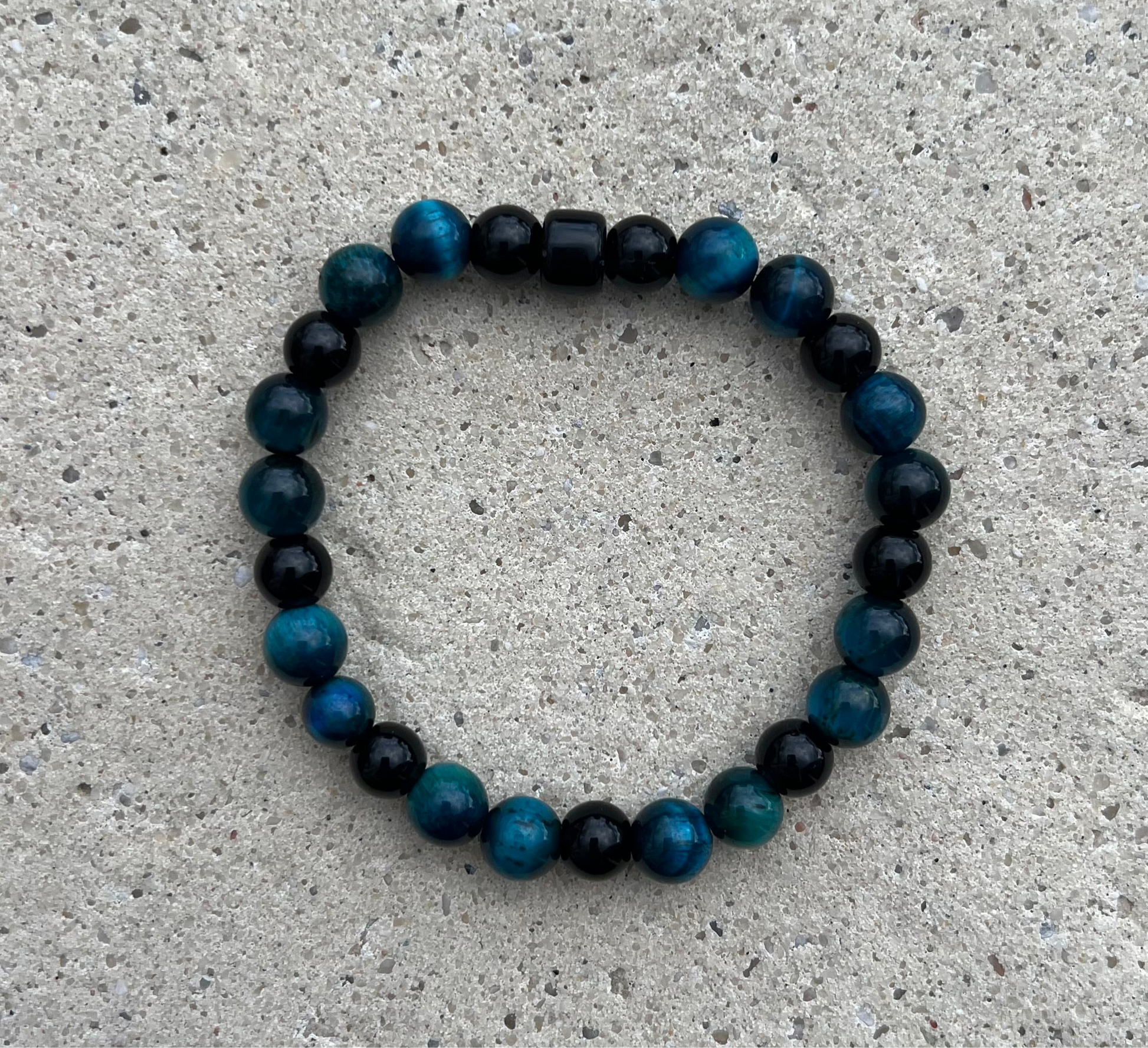 Le bracelet Cobalt associe des perles bleues brillantes et quelques touches de noir, pour un style élégant et dynamique.