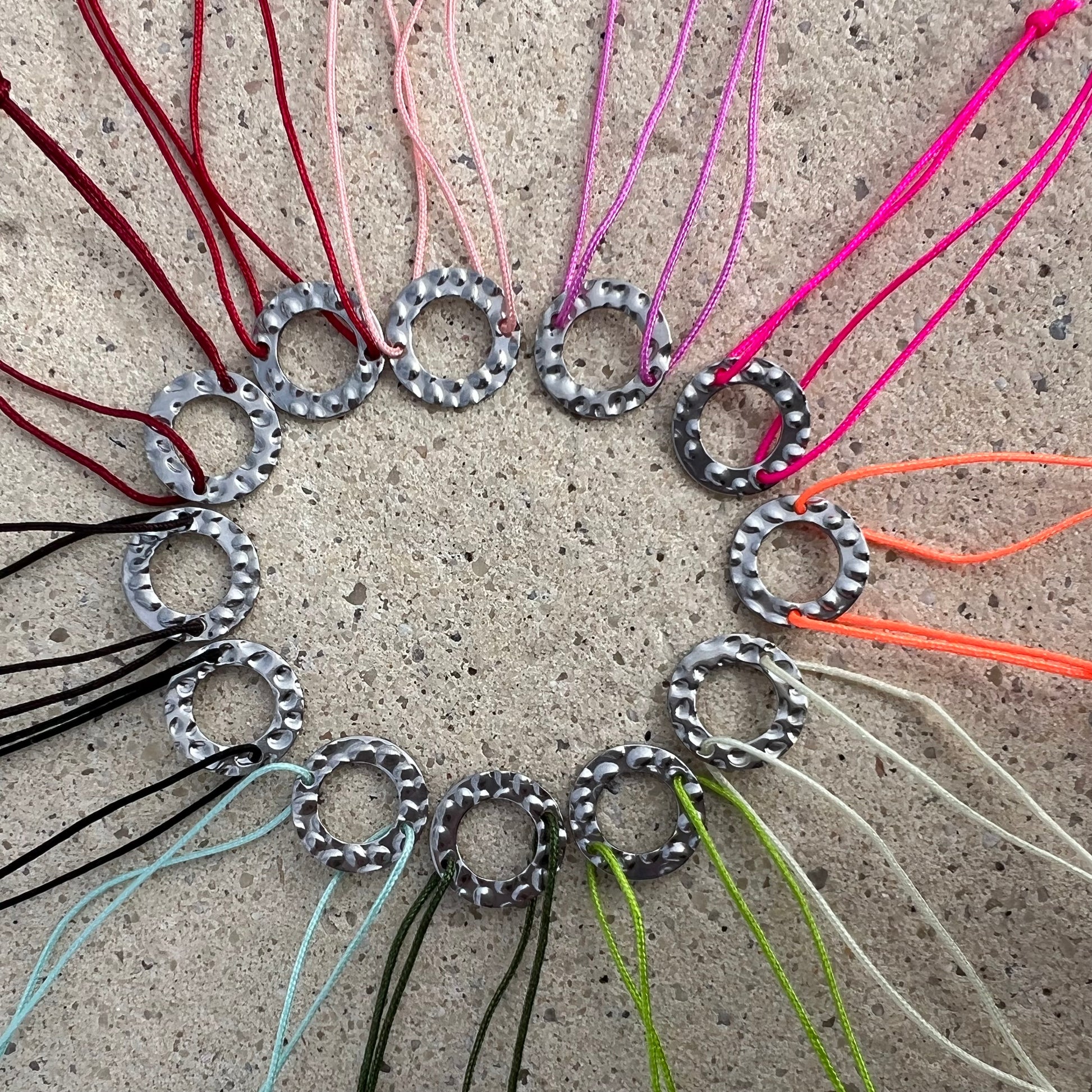 Ajustable à toutes les tailles, il peut être personnalisé en choisissant la couleur du fil et du cercle, afin de créer un bijou unique et élégant.