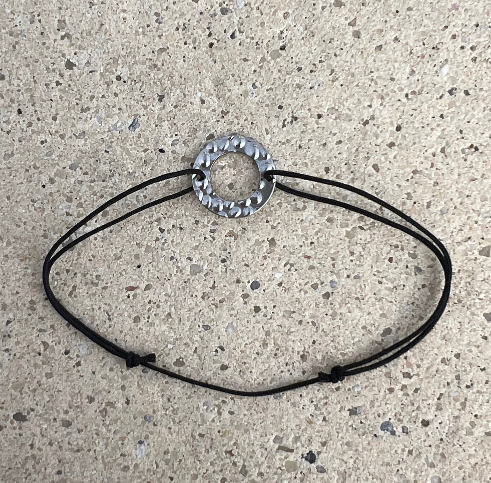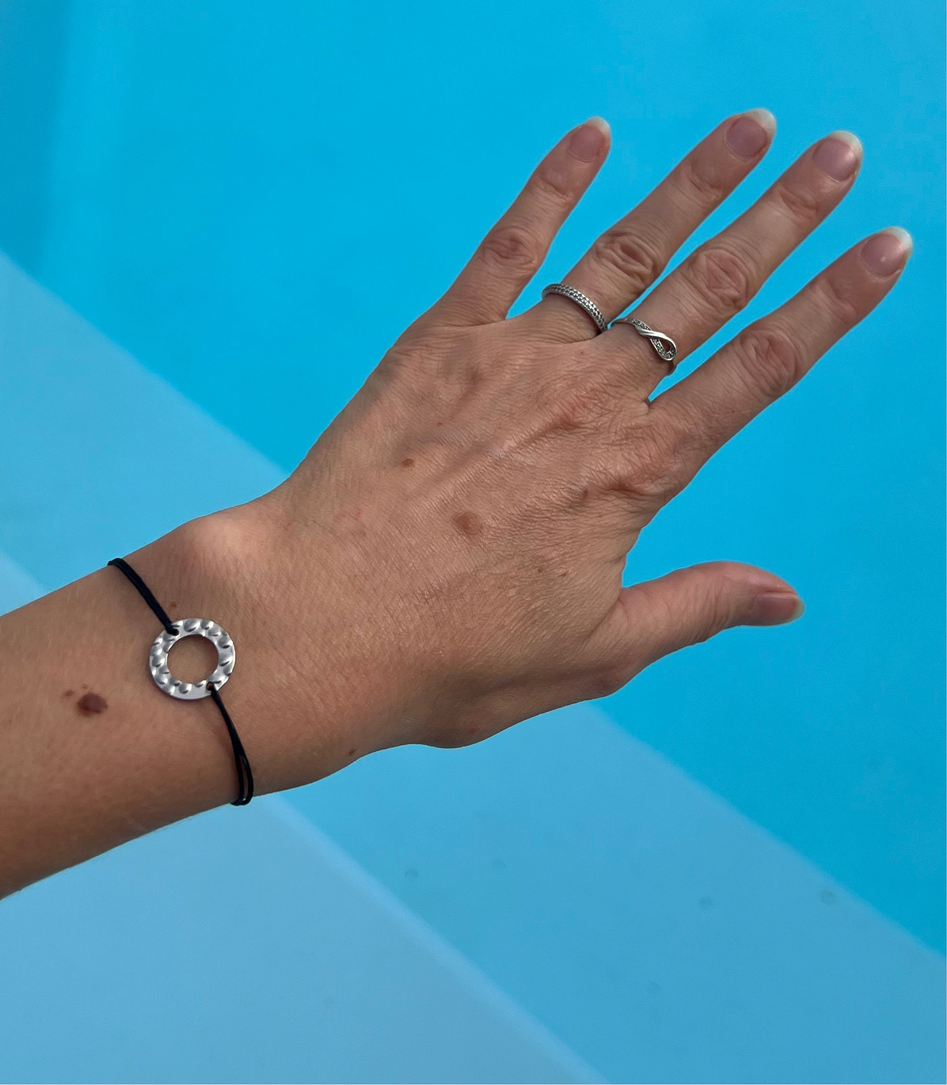 Le bracelet Essentiel allie délicatement fil fin et cercle central en acier inoxydable doré ou argenté, pour un bijou minimaliste et intemporel.